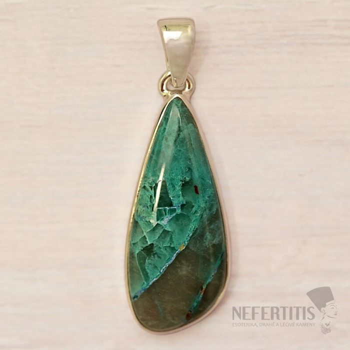 Bezaubernder Silberanhänger mit seltenem und von Sammlern geschätztem natürlichem Quantum Quattro. 925er Silber. Quantum Quattro ist eine Kombination aus vier Mineralien – Shattuckit, Dioptas, Malachit und Chrysokoll. Jedes Schmuckstück ist ein Unikat und regt dank der Farbkombination und Anordnung der Mineralien die Fantasie an und erinnert an eine Vogelperspektive auf die Erde. Sie erhalten ein wunderschönes Schmuckstück, das niemand vermissen wird und das zu verschiedenen Anlässen passt. Sie kaufen den abgebildeten Schmuck direkt.