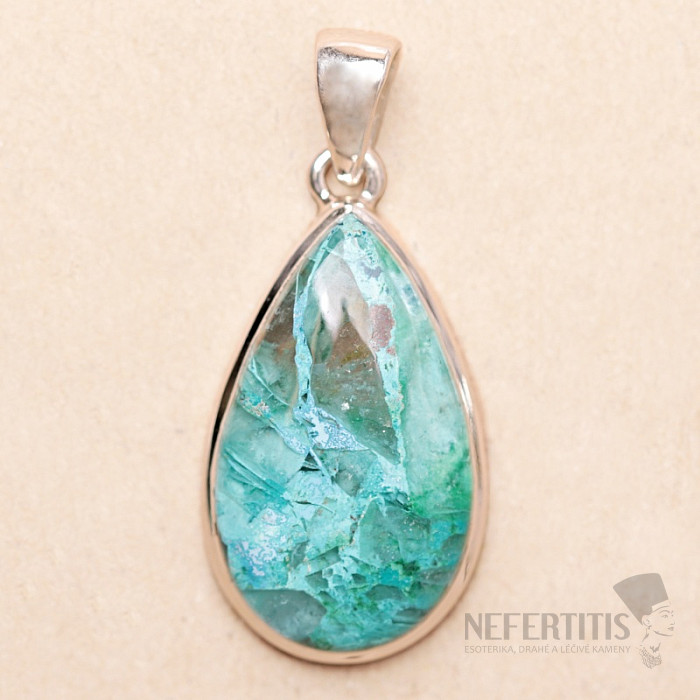 Bezaubernder Silberanhänger mit seltenem und von Sammlern geschätztem natürlichem Quantum Quattro. 925er Silber. Quantum Quattro ist eine Kombination aus vier Mineralien – Shattuckit, Dioptas, Malachit und Chrysokoll. Jedes Schmuckstück ist ein Unikat und regt dank der Farbkombination und Anordnung der Mineralien die Fantasie an und erinnert an eine Vogelperspektive auf die Erde. Sie erhalten ein wunderschönes Schmuckstück, das niemand vermissen wird und das zu verschiedenen Anlässen passt. Sie kaufen den abgebildeten Schmuck direkt.