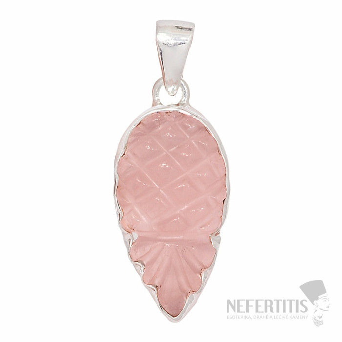 Rosenquarz geschnitzter Anhänger Silber Ag 925 P127