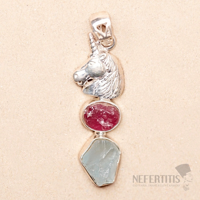 Ein Silberanhänger mit einem Rohrubin, ergänzt durch Aquamarin, erfreut nicht nur das Auge durch seine schöne Farbe, sondern bringt vor allem Frieden, Freude und Glück. Ag 925. Sie erwerben direkt das abgebildete Schmuckstück.