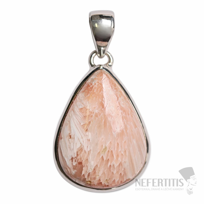 Bezaubernder Silberanhänger mit lachsfarbenem Skolezit. Der wunderschöne Stein macht dieses Schmuckstück nicht nur im Sommer zu einem echten Hingucker. Dank seiner Form und Größe ist es ein außergewöhnlich schönes Schmuckstück. Silber 925. Sie erwerben den abgebildeten Anhänger.