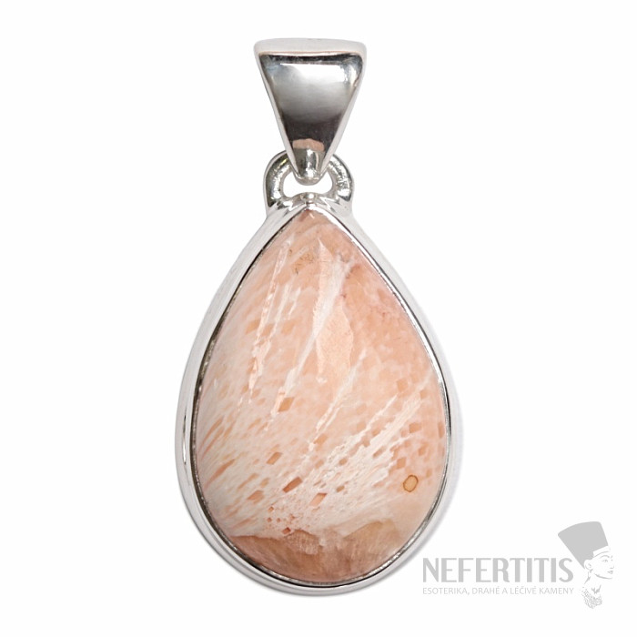 Bezaubernder Silberanhänger mit lachsfarbenem Skolezit. Der wunderschöne Stein macht dieses Schmuckstück nicht nur im Sommer zu einem echten Hingucker. Dank seiner Form und Größe ist es ein außergewöhnlich schönes Schmuckstück. Silber 925. Sie erwerben den abgebildeten Anhänger.