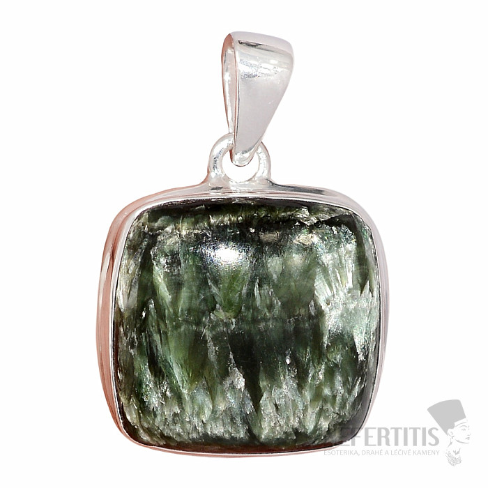Silberanhänger mit Seraphinit. Wunderschön gefärbter Seraphinit. Ag 925. Ein unübersehbarer Stein, nicht nur dank des federähnlichen Musters, passend zu verschiedenen Anlässen. Sie erwerben hier direkt den abgebildeten Schmuck.