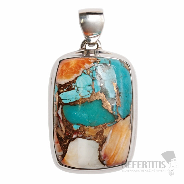 Einzigartiger Silberanhänger aus Muschelfragmenten. Silber 925. Das Schmuckstück besteht aus farbigen Muschelteilen, die mit Kupfer zu einem eindrucksvollen Cabochon verbunden sind. Jedes Mosaik ist farblich und gestalterisch einzigartig. Die wunderschöne Farbkombination verleiht dem Schmuckstück Originalität und Unverwechselbarkeit. Sie erwerben genau das abgebildete Schmuckstück.