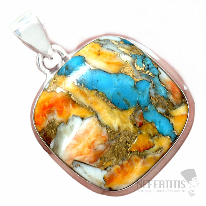 Diese Art von Schmuck birgt die Geheimnisse des Meeres. Seine leuchtenden, natürlichen Farben – Rot, Orange, Braun, Gelb und Weiß – stammen von den Schalen der Stachelaustern der Gattung Spondylus, wobei der weiße Teil von der Unterseite der Schale kommt. Diese Austern leben hauptsächlich in den warmen Gewässern des Golfs von Kalifornien (Meer von Cortez) in Baja California, Mexiko. Schmuck aus Muscheln ist ein Symbol des Ozeans und steht für die Ruhe und den Frieden der Tiefsee. Er fördert Verständnis und Geduld.