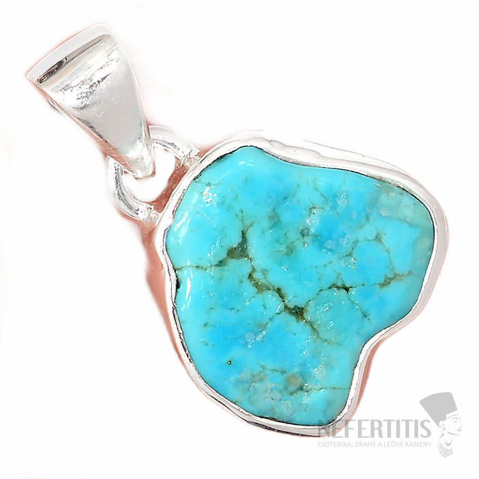 Ein beeindruckender und sehr eleganter Silberanhänger aus blauem Türkis , dem sogenannten „Kingman-Türkis“, der in der Kingman-Region in Arizona, USA, abgebaut wird. Es handelt sich um einen hochwertigen Stein, der für seine satte blau-grüne Farbe und die charakteristische Maserung bekannt ist. Silber 925. Sie erwerben das abgebildete Schmuckstück.