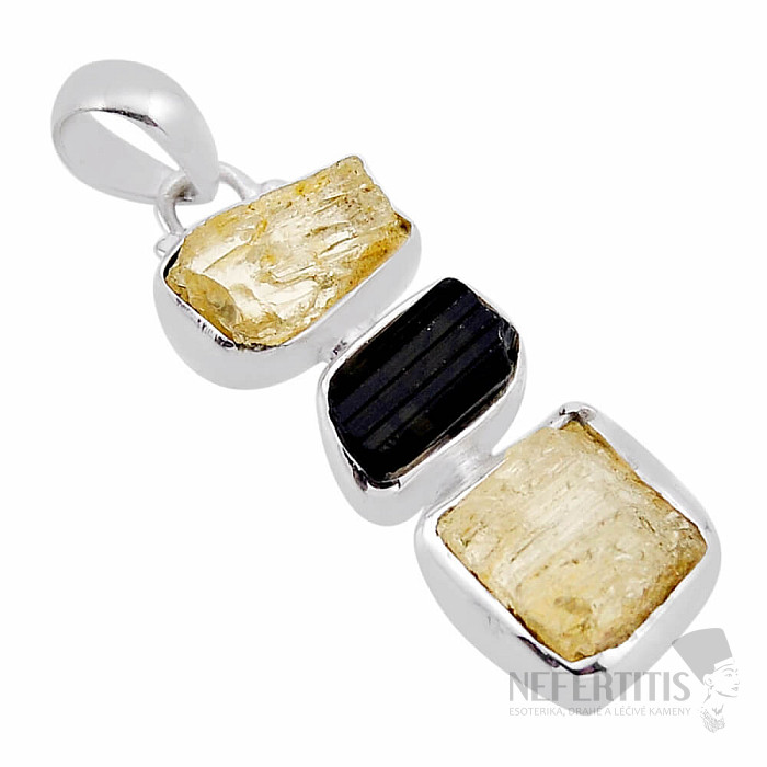 Attraktiver, eleganter, etwas geheimnisvoller Anhänger aus rohem schwarzem Turmalin, Skoryl und Skapolith in Silber. Er lindert Stress, Ärger, Angst und Negativität. Schwarze Rohturmaline weisen häufig Risse auf. Dies ist ihr charakteristisches Merkmal und der Beweis, dass Sie echten natürlichen Turmalin kaufen. Ag 925. Sie kaufen das abgebildete Schmuckstück.