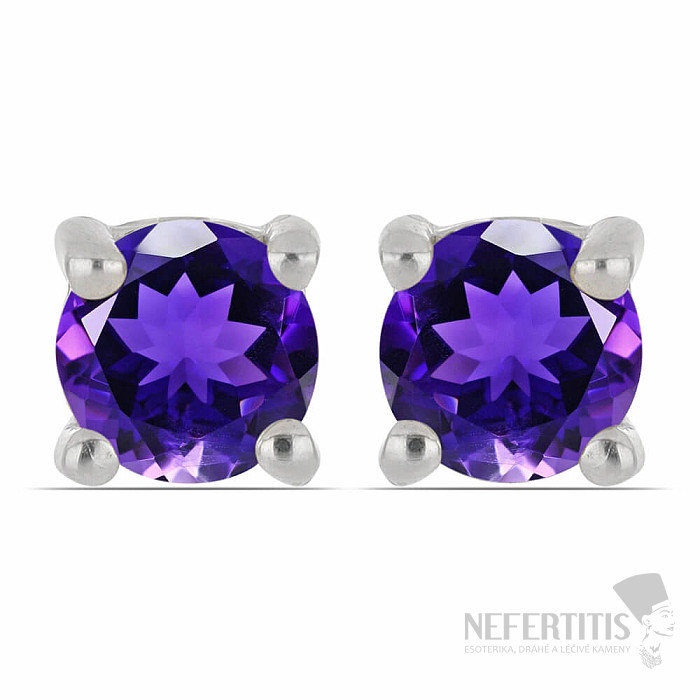 Exklusive Silberohrringe aus der Designlinie Nefertitis Collection mit natürlich geschliffenen afrikanischen Amethysten. Die Steine sind in rhodiniertes Silber gefasst , dessen Oberfläche an Weißgold erinnert und den Ohrringen einen luxuriösen Eindruck verleiht. Rhodiniertes Silber ist weniger anfällig für Oxidation (Schwärzung) der Oberfläche. Wunderschöner, funkelnder Schmuck mit klaren Steinen in Juwelierqualität, deren Schönheit durch den Lichteinfall auf die einzelnen Facetten des Schliffs betont wird, passend für verschiedene Anlässe. Rhodiniertes Silber Ag 925/1000. Das angegebene Gewicht gilt für das ganze Paar. Amethystgröße 4 mm. Illustratives Bild.