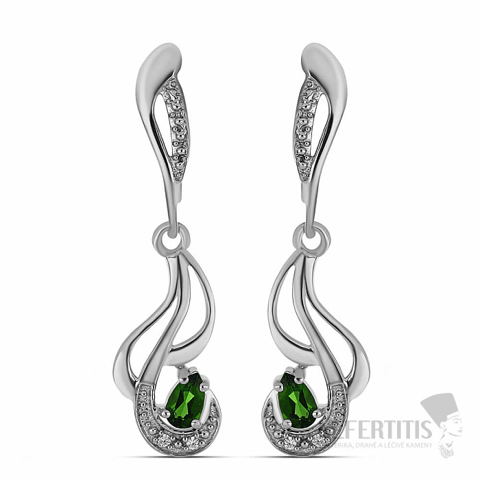 Silberohrringe mit geschliffenen Chromdiopsiden und Zirkonen Ag 925 029264 DIO