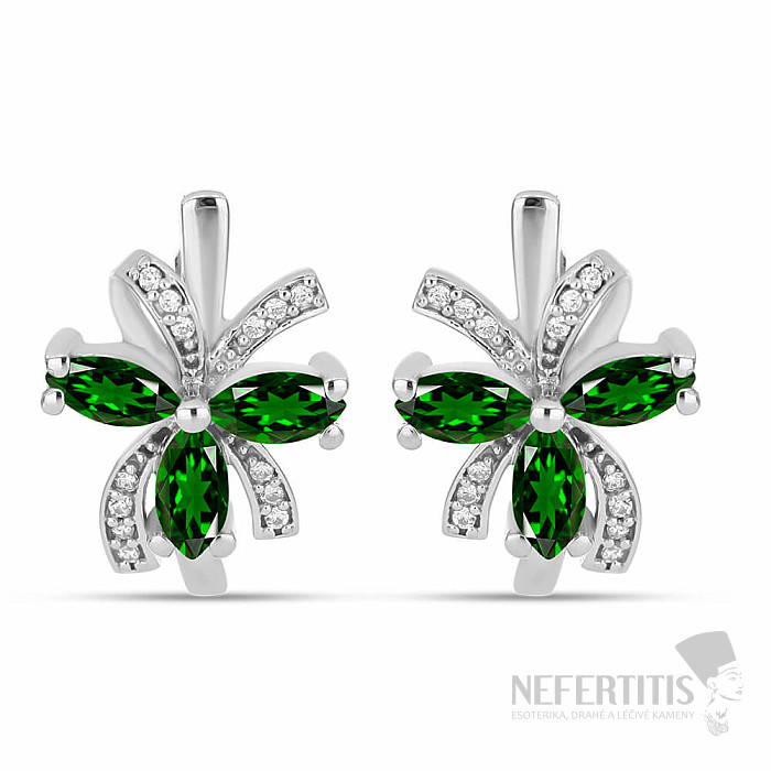 Silberohrringe mit geschliffenen Chromdiopsiden und Zirkonen Ag 925 026541 DIO