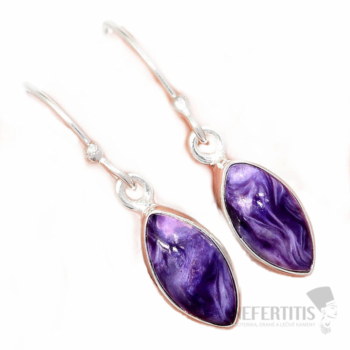 Exklusive Silberohrringe aus hochwertigem Charoit. Silber 925. Der wunderschöne, violette Charoit besticht durch seinen seidigen Glanz und das faszinierende Farbenspiel im wechselnden Licht. Das angegebene Gewicht bezieht sich auf das gesamte Paar. Sie erwerben genau den abgebildeten Schmuck.