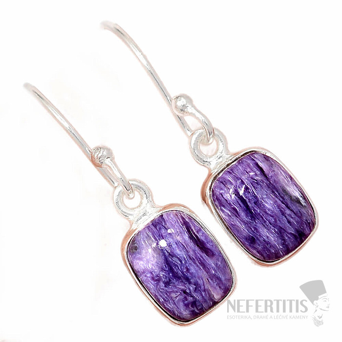 Exklusive Silberohrringe aus hochwertigem Charoit. Silber 925. Der wunderschöne, violette Charoit besticht durch seinen seidigen Glanz und das faszinierende Farbenspiel im wechselnden Licht. Das angegebene Gewicht bezieht sich auf das gesamte Paar. Sie erwerben genau den abgebildeten Schmuck.