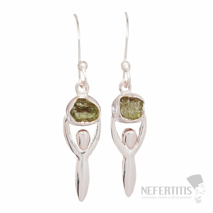 Attraktive silberne Designer-Ohrringe mit Moldavit . Silber 925. Das angegebene Gewicht bezieht sich auf das gesamte Paar. Sie erwerben genau das abgebildete Schmuckstück.