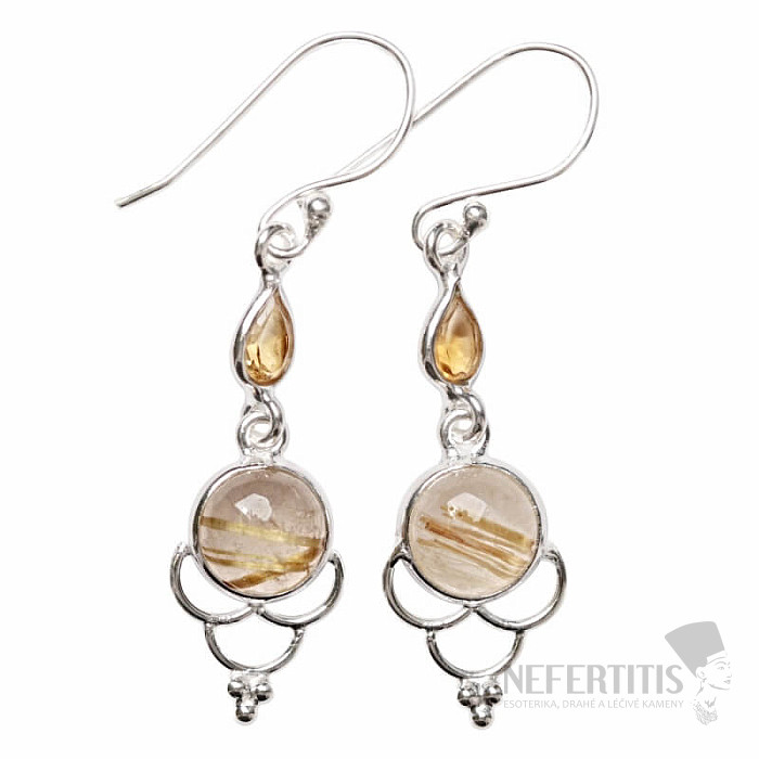 Attraktive Designer-Ohrringe aus Silber mit Sagenit und geschliffenem Citrin. Der Sagenit schimmert mit goldenen Einschlüssen von „goldenem“ Rutil wie die Sonne am Sommerhimmel. Ein Schmuckstück, das schon beim Anblick positive Stimmung verbreitet. Silber 925. Das angegebene Gewicht bezieht sich auf das gesamte Paar. Sie erwerben das abgebildete Paar.
