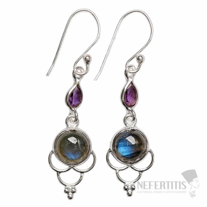 Attraktive Designer-Ohrringe aus Silber mit Labradoriten , die ein einzigartiges Farbenspiel aufweisen – das leuchtende Blau schimmert magisch im Licht – und geschliffenen Amethysten. Silber 925. Das angegebene Gewicht bezieht sich auf das gesamte Paar. Sie erwerben genau den abgebildeten Schmuck.