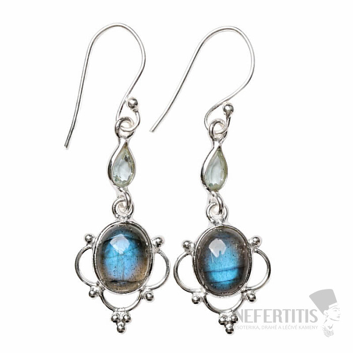 Attraktive Designer-Ohrringe aus Silber mit Labradoriten , die ein einzigartiges Farbenspiel aufweisen – das leuchtende Blau schimmert magisch im Licht – und geschliffenen Topasen. Silber 925. Das angegebene Gewicht bezieht sich auf das gesamte Paar. Sie erwerben genau den abgebildeten Schmuck.