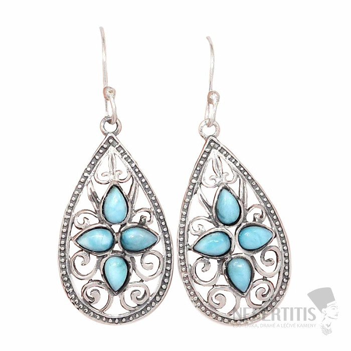 Attraktive Designer-Ohrringe aus Silber mit Larimara-Verzierung . Silber 925. Das angegebene Gewicht bezieht sich auf das gesamte Paar. Sie erwerben genau das abgebildete Schmuckstück.