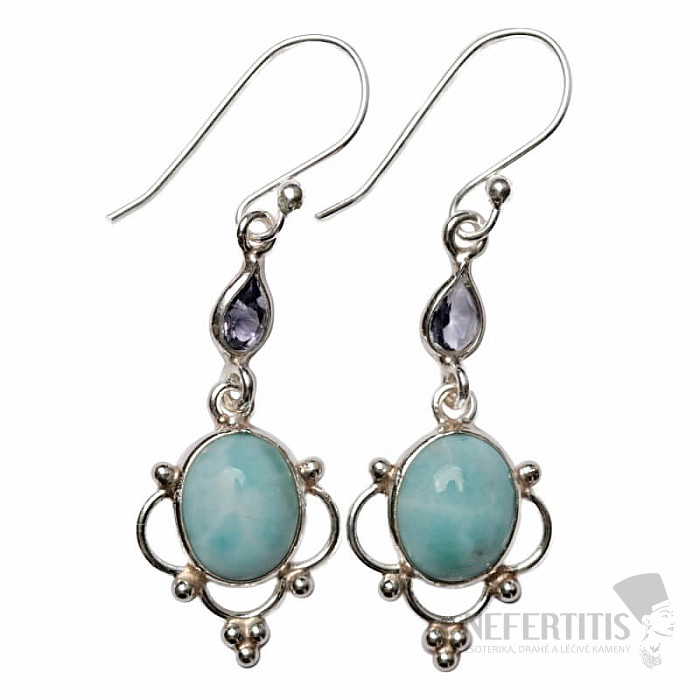 Attraktive Designer-Ohrringe aus Silber mit Larimar- und geschliffenen Iolithen . Silber 925. Das angegebene Gewicht bezieht sich auf das gesamte Paar. Sie erwerben genau das abgebildete Schmuckstück.