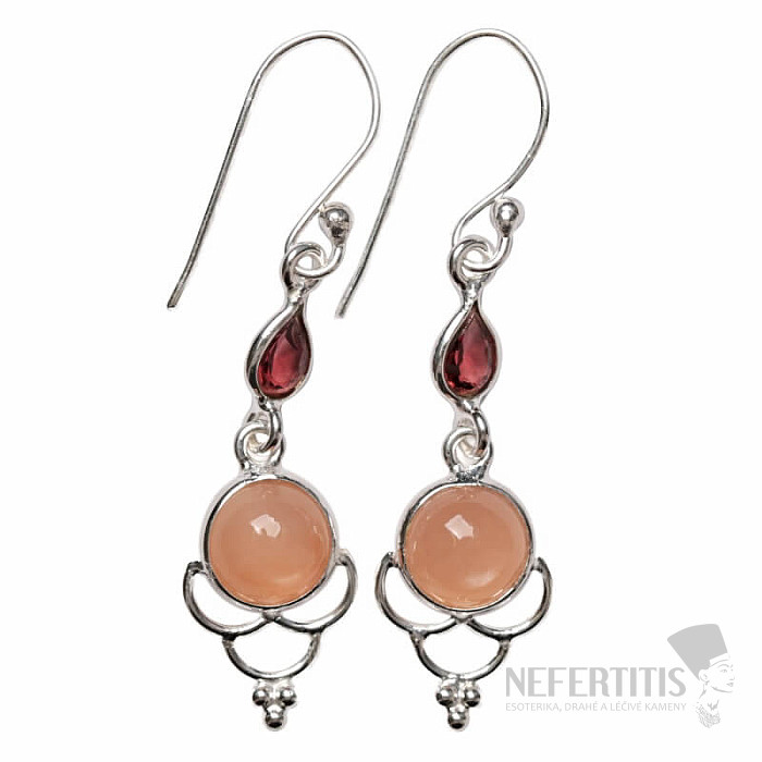 Attraktive Designer-Ohrringe aus Silber mit orangefarbenem Mondstein und geschliffenem Granat. Silber 925. Die Ohrringe werden Sie auf den ersten Blick mit dem seidig-weichen Schimmer des erstklassigen Mondsteins verzaubern. Das angegebene Gewicht bezieht sich auf das gesamte Paar. Sie erwerben das abgebildete Paar.