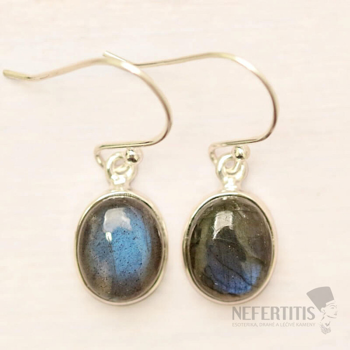 Wunderschöne Silberohrringe mit irisierendem Labradorit mit markantem Farbspiel, bei dem die leuchtend blaue Farbe bei Lichteinfall magisch leuchtet. Ag 925. Das angegebene Gewicht gilt für das gesamte Paar. Sie erwerben direkt das abgebildete Schmuckstück.