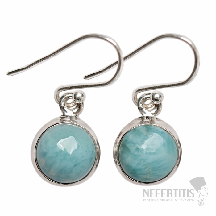Elegante Silberohrringe mit Larimar-Cabochons, die an das Spiel der Sonnenstrahlen auf der Meeresoberfläche erinnern. Silber 925. Das angegebene Gewicht bezieht sich auf das gesamte Paar. Sie erwerben genau den abgebildeten Schmuck.