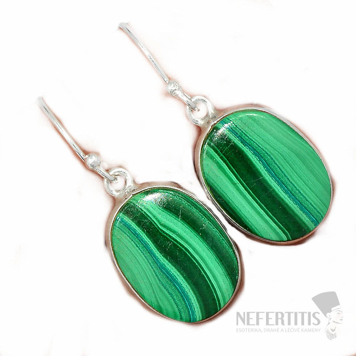 Markante silberne Malachit-Ohrringe. Ag 925. Durch die typische grüne Farbe und das Muster dieses wunderschönen Steins sind die Ohrringe ein außergewöhnliches und unverwechselbares Accessoire für verschiedene Anlässe. Sie kaufen genau das abgebildete Paar. Das angegebene Gewicht gilt für das gesamte Paar.