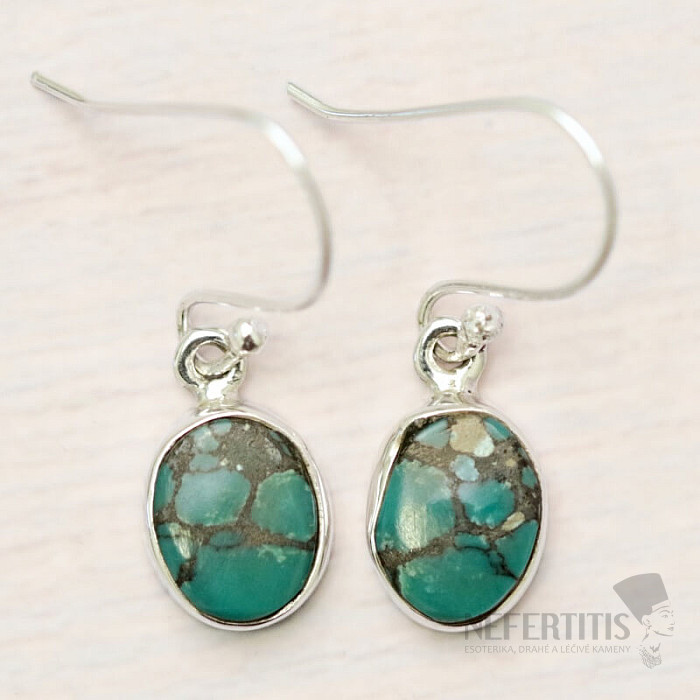 Außergewöhnliche Silberohrringe mit Türkisstücken , durch Kupfer zu eindrucksvollen Cabochons in türkisblauer Farbe verbunden. Diese Art von Schmuck erfreut sich weltweit großer Beliebtheit aufgrund der ständig steigenden Preise für massive Stücke aus natürlichem Türkis. Türkis in Schmuck bringt Glück und unterstützt die Liebe. Kupfer wird seit jeher in vielen Kulturen auf der ganzen Welt als kraftvolles Heilmittel verwendet. Die erste Erwähnung der heilenden Wirkung von Kupfer findet sich bereits auf einem ägyptischen Papyrus aus der Zeit 2600 bis 2200 v. Chr. Ag 925. Das angegebene Gewicht gilt für das gesamte Paar. Sie kaufen direkt das abgebildete Schmuckstück.