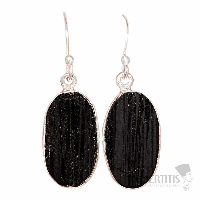 Attraktive, elegante und geheimnisvolle Ohrringe aus rohen schwarzen Turmalinen in Silber. Die schwarze Farbe des Turmalins bildet einen wunderschönen Kontrast zum Glanz des Silbers und verleiht diesen Ohrringen Eleganz und macht sie zu einem äußerst dekorativen Schmuckstück. Schwarze, rohe Turmaline weisen häufig Risse auf – dies ist ihr charakteristisches Merkmal und ein Beweis für die Echtheit des natürlichen Turmalins. Silber 925. Sie erwerben den abgebildeten Schmuck. Das angegebene Gewicht bezieht sich auf das gesamte Paar.