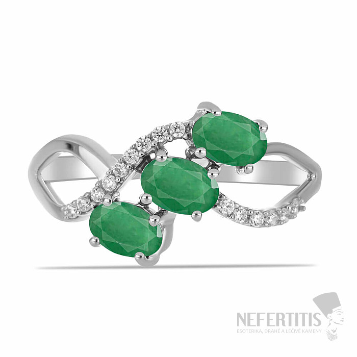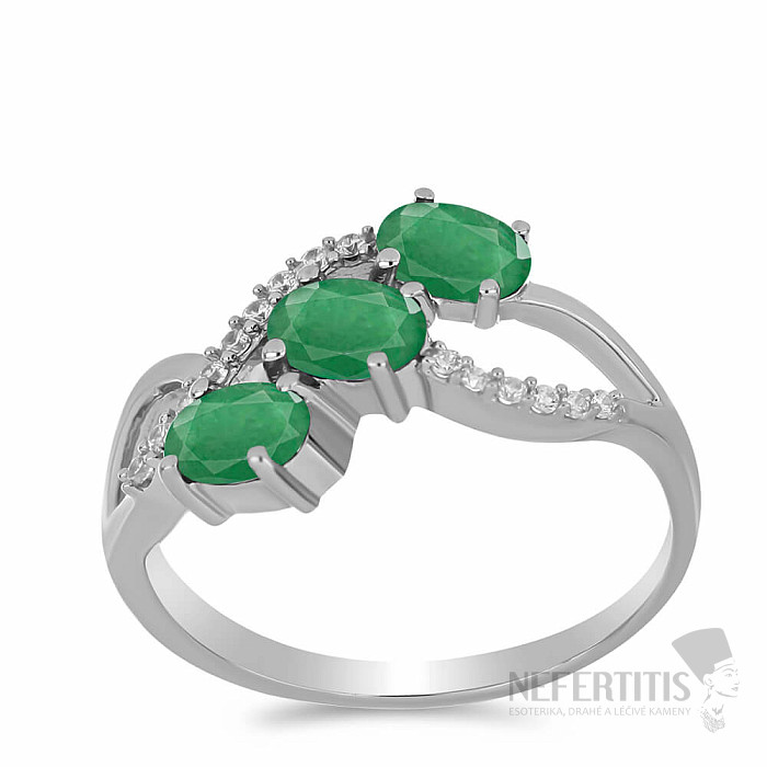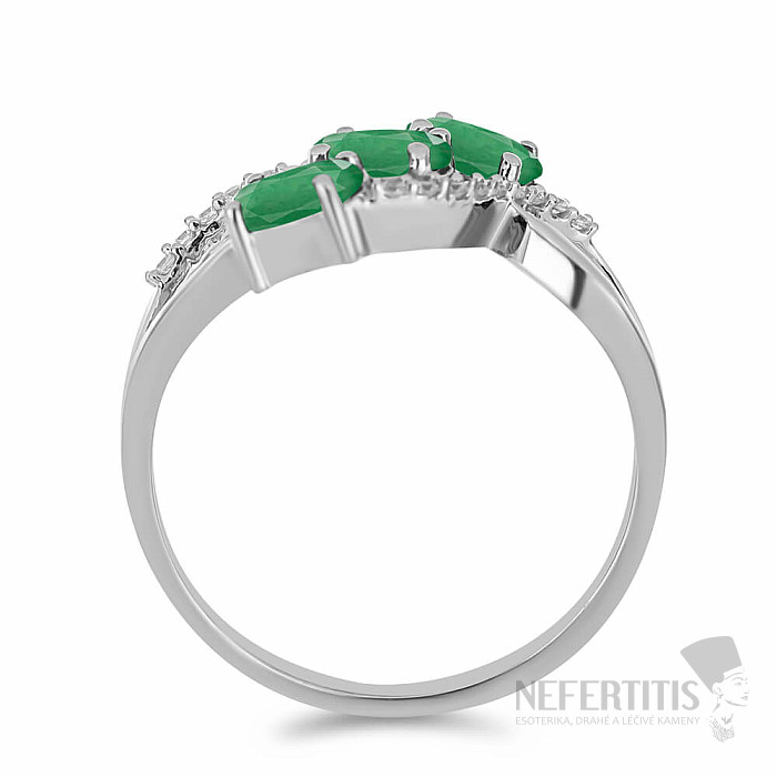 Silberring mit geschliffenen Smaragden und Zirkonen Ag 925 016803 EM