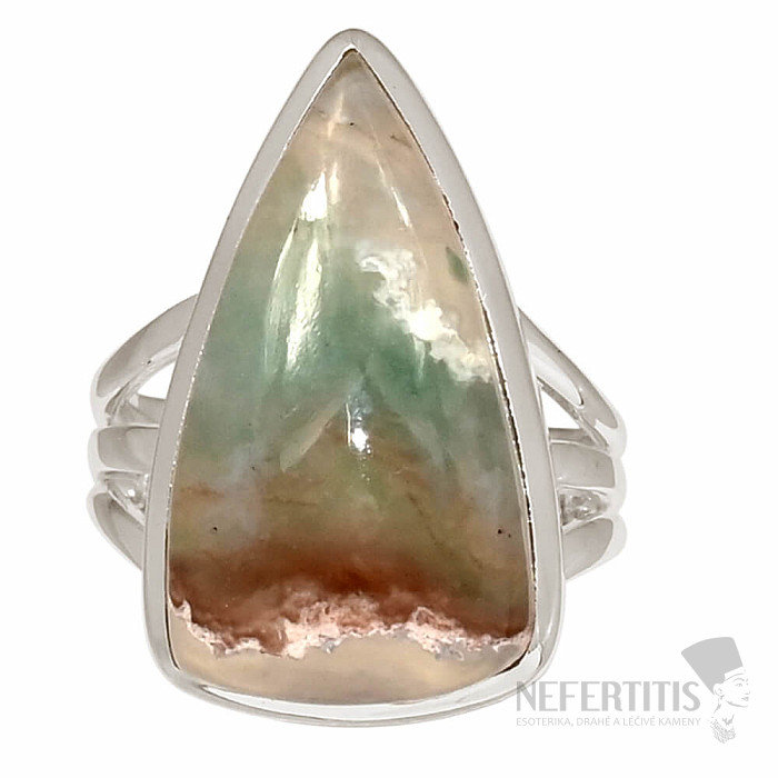 Wunderschöner Silberring aus seltenem Aquapras. Silber 925. Aquapras ist eine wunderschöne Chalcedon-Varietät aus Afrika, die Blaugrün und Braun vereint. Dank dieser ungewöhnlichen Farbkombination aus Himmelblau, Grün und Braun ist jedes Stück ein Unikat. Manche Ringe weisen milchig-weiße Einschlüsse auf, die an Meereswellen, im Meer treibende Inseln oder Wolken am Himmel erinnern. Durch sein außergewöhnliches Aussehen ist der Stein unverwechselbar schön. Der Stein hat einen Durchmesser von ca. 2,3 cm . Sie erwerben das abgebildete Schmuckstück.
