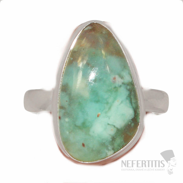 Wunderschöner Silberring aus seltenem Aquapras. Silber 925. Aquapras ist eine wunderschöne Chalcedon-Varietät aus Afrika, die Blaugrün und Braun vereint. Dank dieser ungewöhnlichen Farbkombination aus Himmelblau, Grün und Braun ist jedes Stück ein Unikat. Manche Ringe weisen milchig-weiße Einschlüsse auf, die an Meereswellen, im Meer treibende Inseln oder Wolken am Himmel erinnern. Durch sein außergewöhnliches Aussehen ist der Stein unverwechselbar schön. Der Stein hat einen Durchmesser von ca. 2 cm . Sie erwerben das abgebildete Schmuckstück.