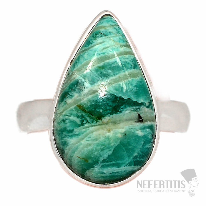 Wunderschöner Silberring mit einem traumhaft gefärbten Amazonit aus Peru, dessen türkisgrüne Farbe an tiefes, klares Wasser erinnert. Silber 925. Steingröße ca. 1,8 cm. Sie erwerben das abgebildete Schmuckstück.