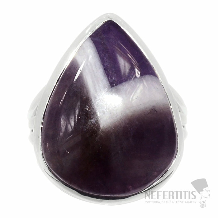 Wunderschöner Silberring mit einem Chevron-Amethyst- Cabochon . Silber 925. Ein äußerst elegantes Schmuckstück, das alle Blicke auf sich zieht und an Ihrer Hand garantiert alle Blicke auf sich zieht. Chevron-Amethyste zeichnen sich durch ein charakteristisches weißes Muster auf dunkelviolettem Grund aus, was diese Amethystart so attraktiv macht. Sie erwerben den abgebildeten Ring. Steingröße ca. 2,2 cm.