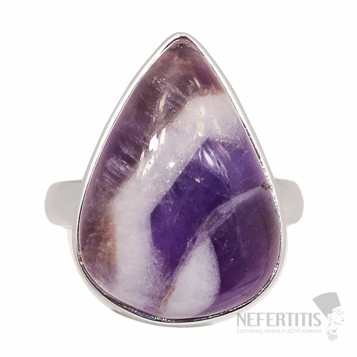 Wunderschöner Silberring mit einem Chevron-Amethyst- Cabochon . Silber 925. Ein äußerst elegantes Schmuckstück, das alle Blicke auf sich zieht und an Ihrer Hand garantiert alle Blicke auf sich zieht. Chevron-Amethyste zeichnen sich durch ein charakteristisches weißes Muster auf dunkelviolettem Grund aus, was diese Amethystart so attraktiv macht. Sie erwerben den abgebildeten Ring. Steingröße ca. 2,2 cm.