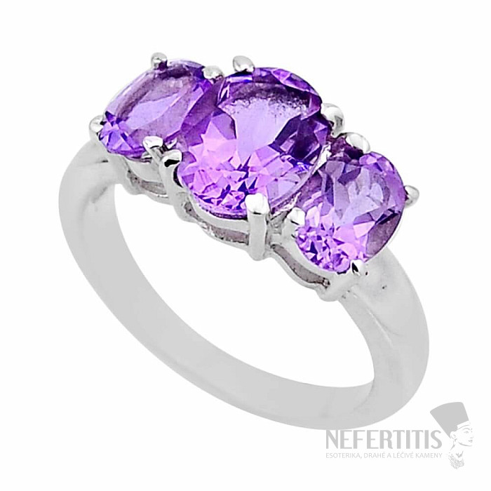Wunderschöner Silberring mit geschliffenen Amethysten . Ag 925. Äußerst eleganter Schmuck, der jeden verzaubert und an Ihrer Hand niemandem entgeht. Die Größe der einzelnen Steine beträgt ca. 0,7 - 0,9 cm. Sie kaufen das abgebildete Schmuckstück.