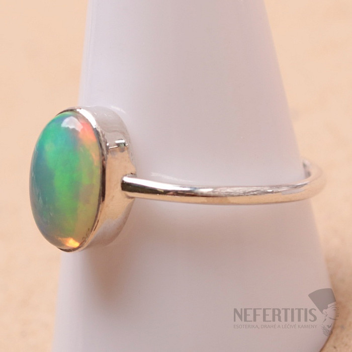 Eleganter Silberring mit einem Cabochon aus äthiopischem Opal. Ag 925. Eindrucksvoller und eleganter Schmuck, der durch seinen Anblick Freude und Harmoniegefühle hervorruft. Äthiopische Opale schwelgen im Vergleich zu australischen Opalen förmlich in neonhellen Farbreflexen. Auch wenn man es auf den ersten Blick nicht vermuten mag, das Farbfeuerwerk, das bei jedem Lichteinfall aus dem Opal dieses Anhängers hervorbricht, wird nicht nur Sie, sondern Ihre gesamte Umgebung verzaubern. Steingröße ca. 1,1 cm. Sie kaufen das abgebildete Schmuckstück.