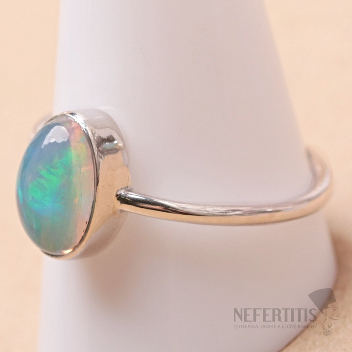 Eleganter Silberring mit einem Cabochon aus äthiopischem Opal. Ag 925. Eindrucksvoller und eleganter Schmuck, der durch seinen Anblick Freude und Harmoniegefühle hervorruft. Äthiopische Opale schwelgen im Vergleich zu australischen Opalen förmlich in neonhellen Farbreflexen. Auch wenn man es auf den ersten Blick nicht vermuten mag, das Farbfeuerwerk, das bei jedem Lichteinfall aus dem Opal dieses Anhängers hervorbricht, wird nicht nur Sie, sondern Ihre gesamte Umgebung verzaubern. Steingröße ca. 1,1 cm. Sie kaufen das abgebildete Schmuckstück.