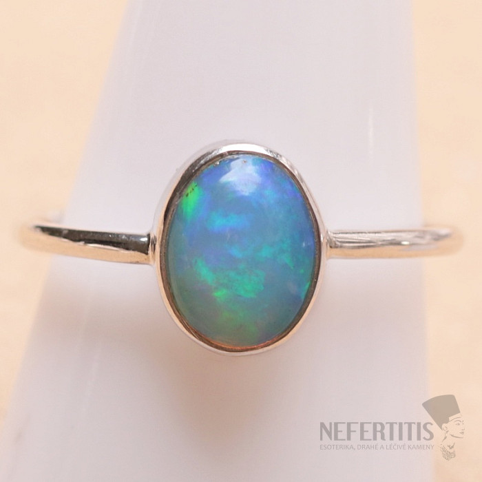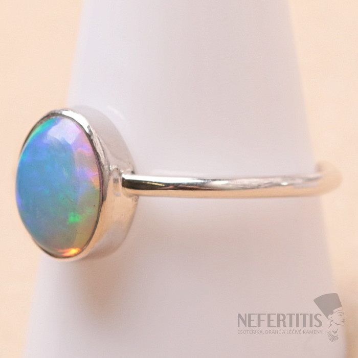 Eleganter Silberring mit einem Cabochon aus äthiopischem Opal. Ag 925. Eindrucksvoller und eleganter Schmuck, der durch seinen Anblick Freude und Harmoniegefühle hervorruft. Äthiopische Opale schwelgen im Vergleich zu australischen Opalen förmlich in neonhellen Farbreflexen. Auch wenn man es auf den ersten Blick nicht vermuten mag, das Farbfeuerwerk, das bei jedem Lichteinfall aus dem Opal dieses Anhängers hervorbricht, wird nicht nur Sie, sondern Ihre gesamte Umgebung verzaubern. Steingröße ca. 1,1 cm. Sie kaufen das abgebildete Schmuckstück.