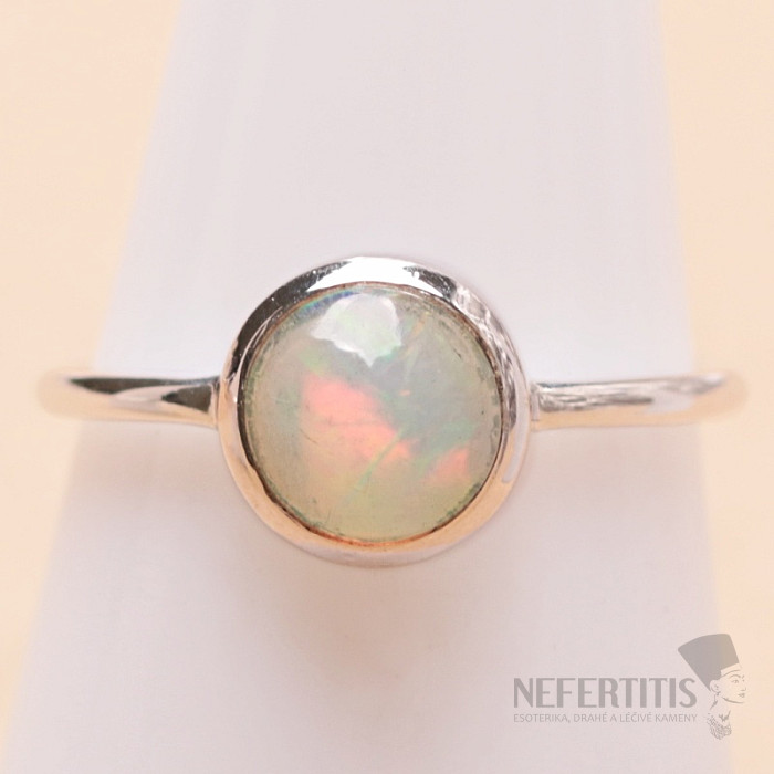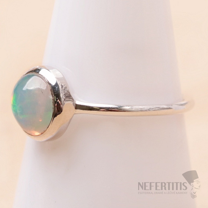 Eleganter Silberring mit einem Cabochon aus äthiopischem Opal. Ag 925. Eindrucksvoller und eleganter Schmuck, der durch seinen Anblick Freude und Harmoniegefühle hervorruft. Äthiopische Opale schwelgen im Vergleich zu australischen Opalen förmlich in neonhellen Farbreflexen. Auch wenn man es auf den ersten Blick nicht vermuten mag, das Farbfeuerwerk, das bei jedem Lichteinfall aus dem Opal dieses Anhängers hervorbricht, wird nicht nur Sie, sondern Ihre gesamte Umgebung verzaubern. Steingröße ca. 0,8 cm. Sie kaufen das abgebildete Schmuckstück.