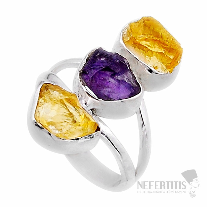 Ein wunderschöner Silberring mit wunderschönen rohen Citrinen und Rohamethyst . Silber 925. Größe des Teils mit Steinen ca. 2,4 cm. Sie erwerben das abgebildete Schmuckstück.
