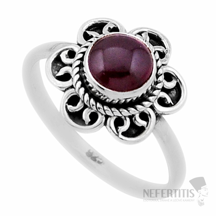 Silberring mit Granat-Cabochon. Silber 925. Der Granat hat einen Durchmesser von ca. 0,6 cm . Sie erwerben das abgebildete Schmuckstück.