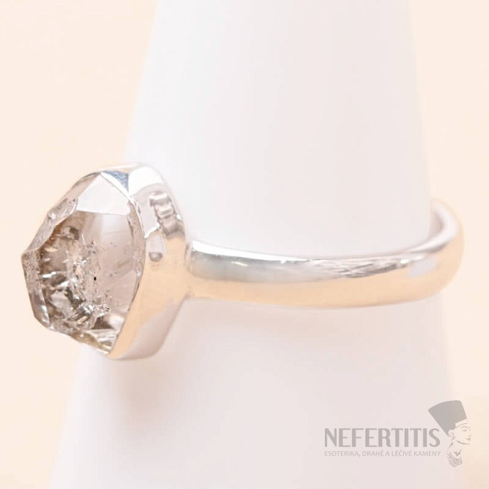 Wunderschöner Ring mit einem seltenen Herkimer-Kristall in Silberfassung. Steingröße ca. 0,9 cm. Silber 925. Sie erwerben das abgebildete Schmuckstück.