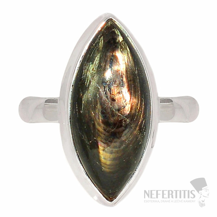 Silberring mit seltenem Hypersthen . Silber 925. Sie erwerben das abgebildete Schmuckstück. Steingröße ca. 2,1 cm.
