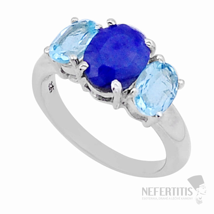 Silberring mit wunderschönem blauen Saphir und geschliffenen Topasen. Ag 925. Größe der einzelnen Steine ca. 0,6 - 0,8 cm. Sie erwerben direkt das abgebildete Schmuckstück.