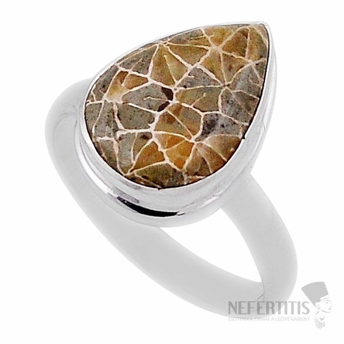 Korallen-Petoskey-Steinring, Silber Ag 925 38125