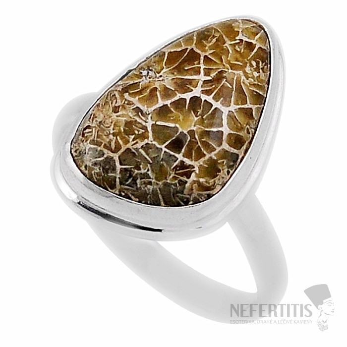 Korallen-Petoskey-Steinring, Silber Ag 925 38137