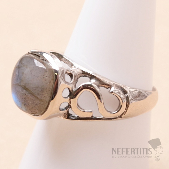 Silberring mit einem Labradorit- Cabochon mit Regenbogen-Farbspiel, bei dem die leuchtend blaue Farbe bei Lichteinfall magisch leuchtet. Ag 925. Steingröße ca. 1,1 cm. Sie erwerben direkt das abgebildete Schmuckstück.