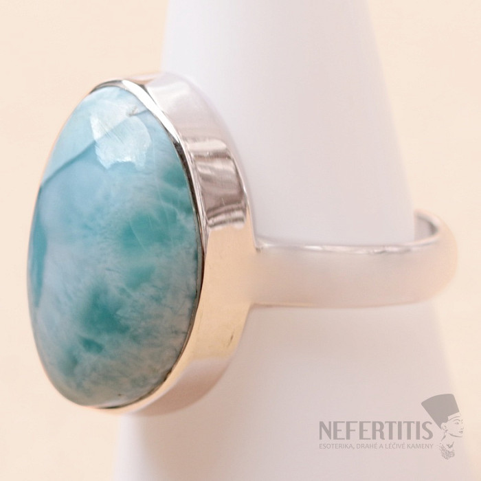 Eleganter Ring Silber mit einem wunderschönen und hochwertigen Larimar-Cabochon , der dem Spiel der Sonnenstrahlen auf der Meeresoberfläche ähnelt. Der Larimar-Stein ist sorgfältig ausgewählt und weist eine ausgeprägte blaue Farbe und Musterung auf. Larimargröße ca. 2 cm. Ag 925. Sie kaufen direkt das abgebildete Schmuckstück.