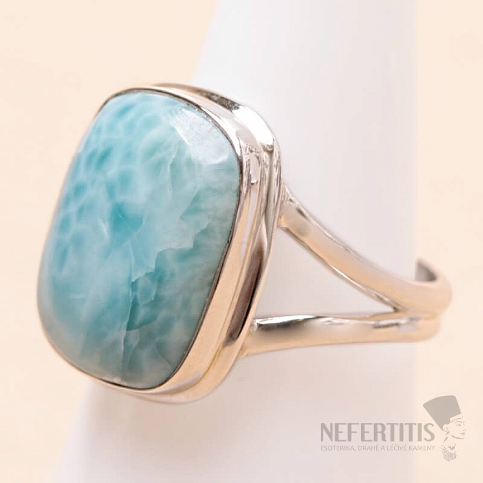 Eleganter Ring Silber mit einem wunderschönen und hochwertigen Larimar-Cabochon , der dem Spiel der Sonnenstrahlen auf der Meeresoberfläche ähnelt. Der Larimarstein ist sorgfältig ausgewählt und weist eine ausgeprägte blaue Farbe und Musterung auf. Larimargröße ca. 1,8 cm. Ag 925. Sie kaufen direkt das abgebildete Schmuckstück.