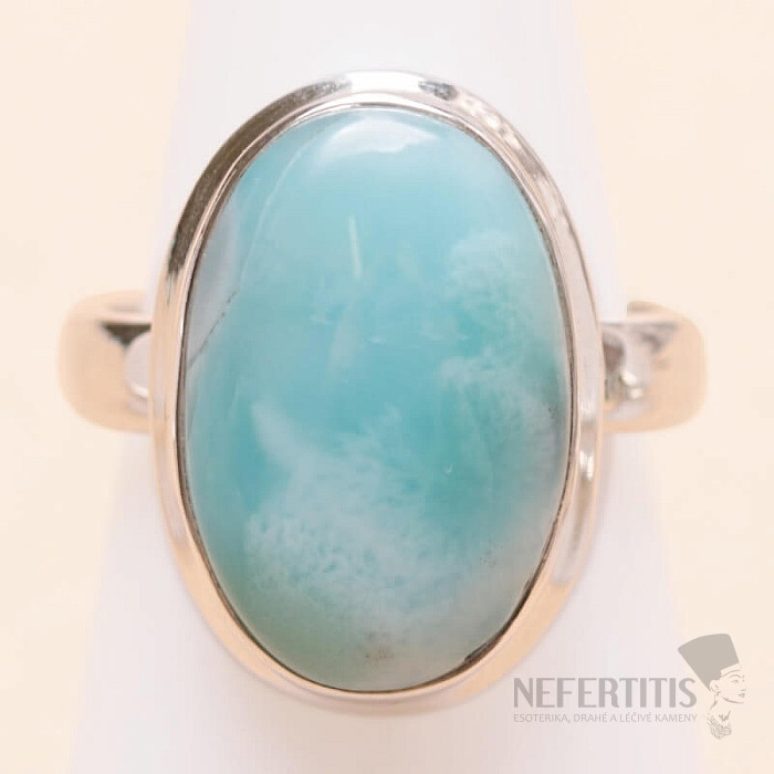 Eleganter Ring Silber mit einem wunderschönen und hochwertigen Larimar-Cabochon , der dem Spiel der Sonnenstrahlen auf der Meeresoberfläche ähnelt. Der Larimar-Stein ist sorgfältig ausgewählt und weist eine ausgeprägte blaue Farbe und Musterung auf. Larimargröße ca. 1,9 cm. Ag 925. Sie erwerben hier direkt das abgebildete Schmuckstück.